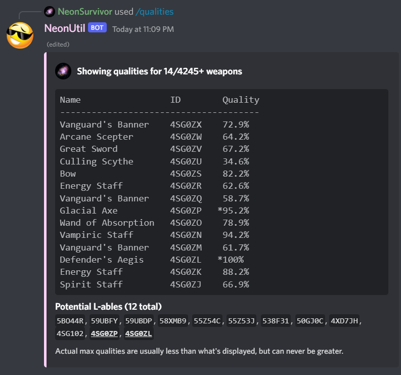NeonUtil allows you to estimate the maximum quality of up to 15 weapons at a time, allowing you to save a lot of time dismantling weapons.
