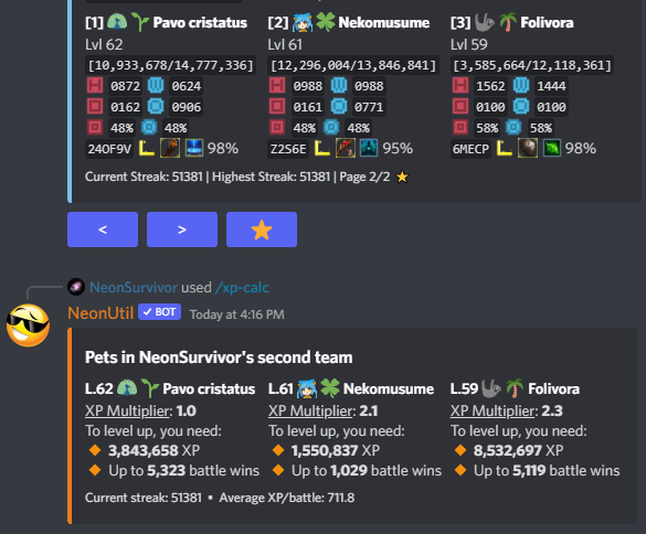 Want to see how long it'll take you to level up your pet? Inspired by former OwO Calc, NeonUtil allows you to predict the number of battles you need to level up.